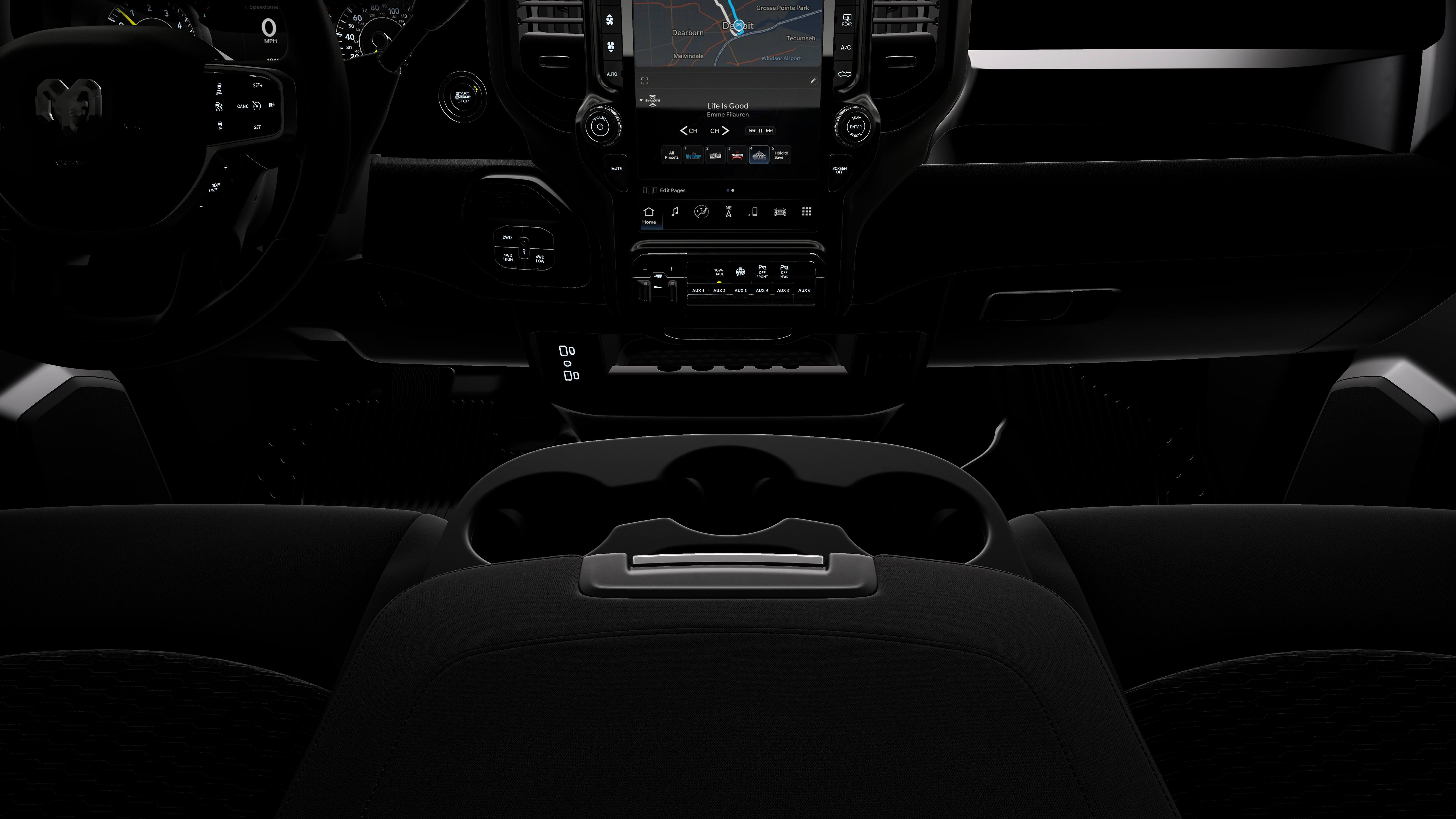 - Radio w/Seek-Scan, Clock, Speed Compensated Volume Control, Aux Audio Input Jack, Voice Activation, Radio Data System and Uconnect External Memory Control