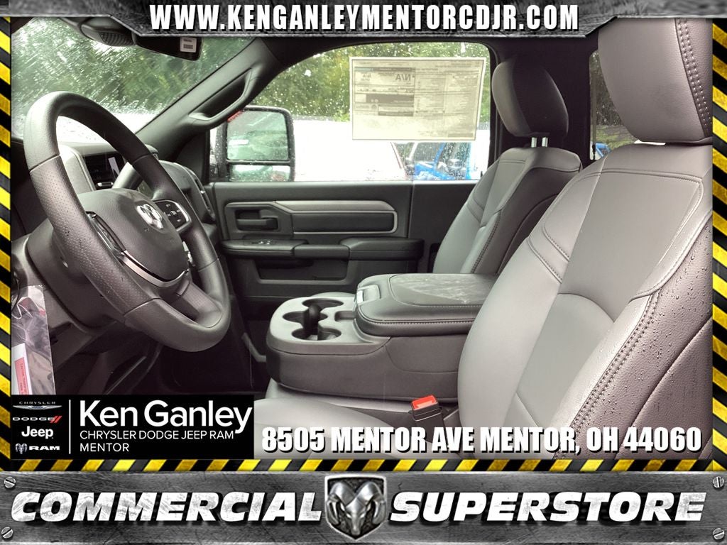 *ParkView Rear Back-Up Camera, 4 Speakers, 4-Wheel Disc Brakes, 4.44 Axle Ratio, 40/20/40 Split Bench Seat, 4G LTE Wi-Fi Hot Spot, ABS brakes, Air Conditioning, AM/FM radio: SiriusXM, Apple CarPlay, Apple CarPlay/Android Auto, Black Exterior Mirrors, Black Power Heated Fold Telescope Mirrors, Black Tubular Side Steps, Cold Weather Group, Compass, Connectivity - US/Canada, Delay-off headlights, Driver door bin, Dual Alternators Rated At 480 Amps, Dual front impact airbags, Dual rear wheels, Electronic Stability Control, Emergency communication system: RAM Connect, Engine Block Heater, Exterior Mirrors Courtesy Lamps, Exterior Mirrors with Heating Element, Exterior Mirrors with Supplemental Signals, For Details, Visit DriveUconnect.com, Front 1-Touch Down Power Windows, Front anti-roll bar, Front Armrest with Cupholders, Front Center Armrest w/Storage, Front fog lights, Front License Plate Bracket, Front reading lights, Fully automatic headlights, Global Telematics Box Module, Google Android Auto, GPS Antenna Input, Heavy Duty Front Suspension Group, Heavy Duty Snow Plow Prep Group, Integrated Voice Command with Bluetooth®, Manual Adjust 4-Way Driver Seat, Manual Adjust 4-Way Front Passenger Seat, Manual Folding Exterior Mirrors, Manuarl Telescoping Mirrors, Manufacturer's Statement of Origin, Max Tow Package, Mirror Running Lights, MOPAR Winter Front Grille Cover, MyFlexCare Service Diesel, Occupant sensing airbag, Outside temperature display, Overhead console, Passenger door bin, Passenger vanity mirror, Power Adjust Mirrors, Power steering, Power Take-Off Right/Left, Power-Adjustable Convex Aux Mirrors, Quick Order Package 25A Tradesman, Radio data system, Radio: Uconnect 5 with 8.4 Display, Rear anti-roll bar, Rear Window Defroster, Remote Keyless Entry, Remote USB Port - Charge Only, Speed control, Speed Sensitive Power Locks, Tachometer, Temperature and Compass Gauge, Tilt steering wheel, Traction control, Tradesman Level 1 Equipment Group, Trailer Brake Control, Trailer Light Check, Upgraded Door Trim Panel, Upgraded Rear HD Stabilizer Bar, Variably intermittent wipers, Voltmeter, Wheels: 19.5 x 6.0 Black Painted Steel. PRICING AVAILABLE TO ALL CUSTOMER!!! WE ARE ONE OF OHIO'S LEADING VOLUME DEALERSHIPS COME SEE OUR HUGE SELECTION AND UNMATCHED SAVINGS ONLY AT GANLEY VILLAGE CHRYSLER DODGE JEEP RAM FIAT OF PAINESVILLE, OH 44077.