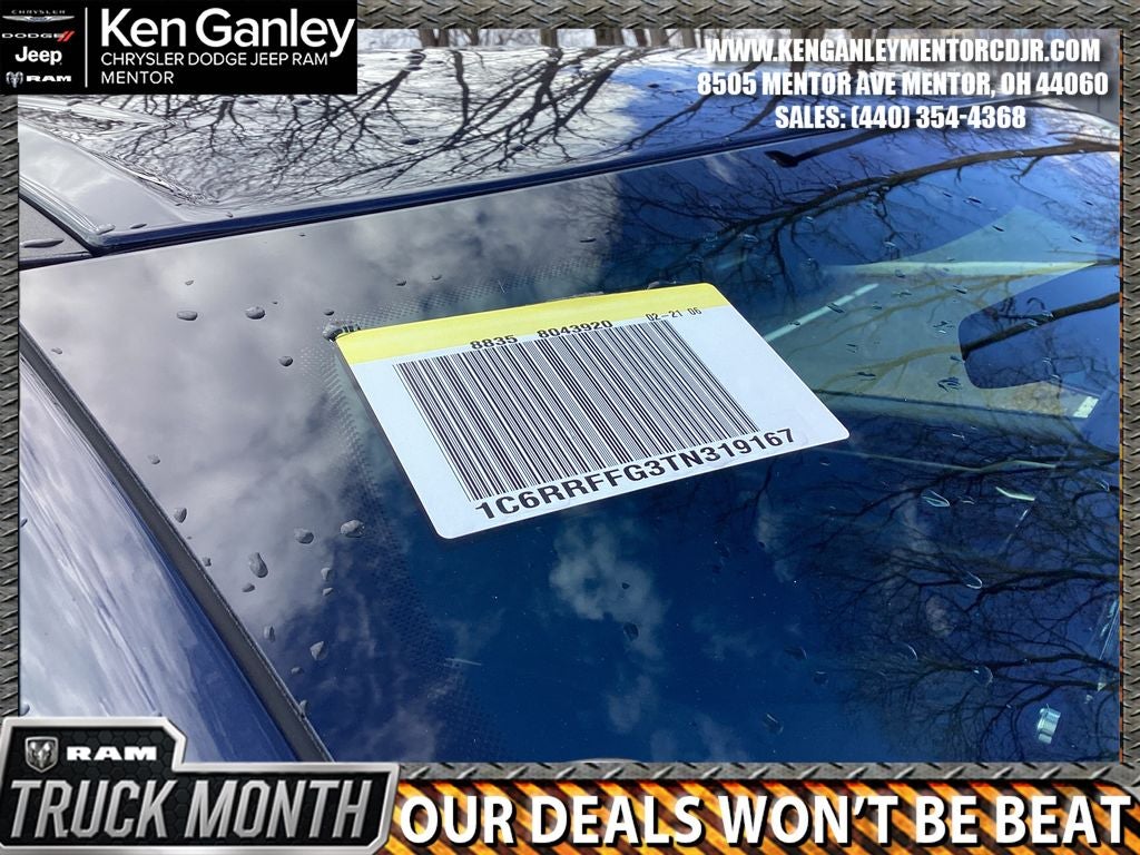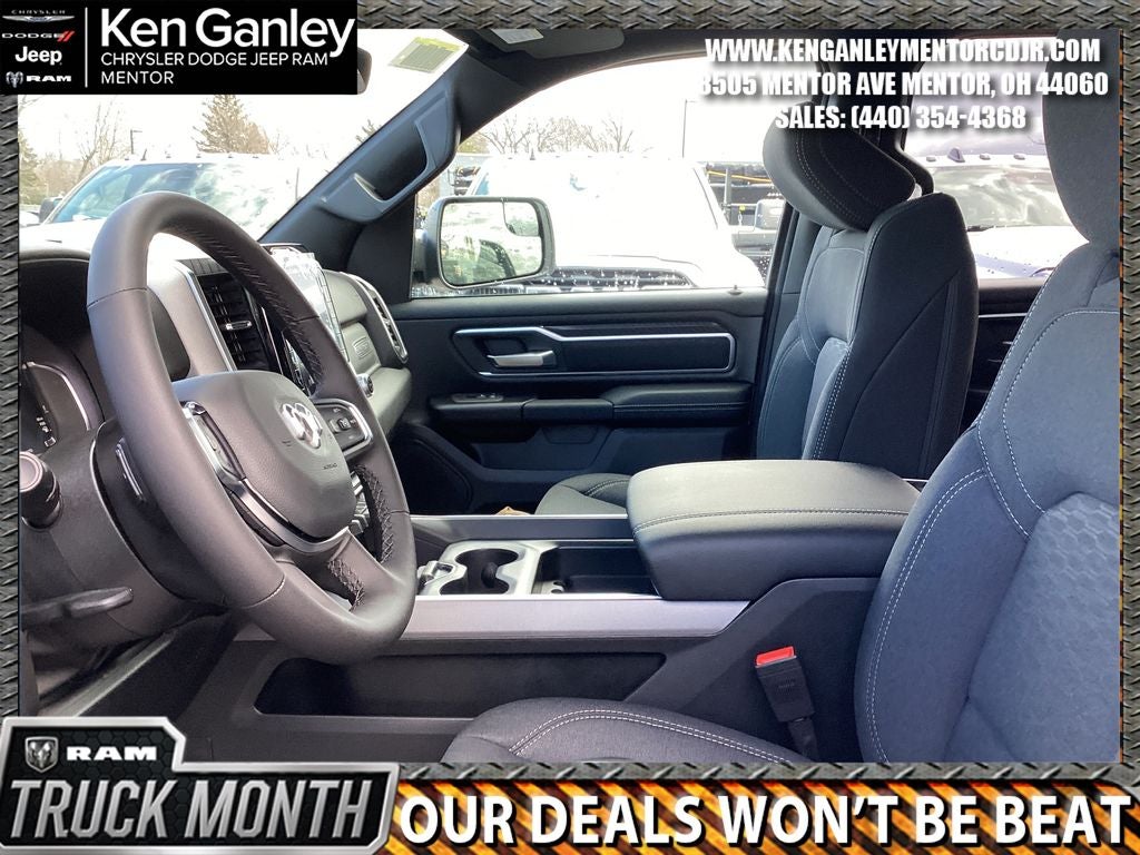 *ParkView Rear Back-Up Camera, 115V Auxiliary Power Outlet, 115V Auxiliary Rear Power Outlet, 12 Touchscreen Display, 2nd Row in Floor Storage Bins, 3 Rear Seat Head Restraints, 4 Way Front Headrests, 4-Wheel Disc Brakes, 400W Inverter, 48V Belt Starter Generator, 4G LTE Wi-Fi Hot Spot, 6 Speakers, 9 Amplified Speakers with Subwoofer, ABS brakes, Accent Color Door Handles, Accent Color Premium Power Mirrors, Accent Color Tailgate Handle, Air Conditioning, Air Conditioning ATC with Dual Zone Control, Alloy wheels, AM/FM radio, Anti-Spin Differential Rear Axle, Apple CarPlay, Apple CarPlay/Android Auto, Auto High-beam Headlights, Auto Power-Folding Mirrors, Auto-Dimming Exterior Driver Mirror, Auto-Dimming Rear-View Mirror, Big Horn Level 2 Equipment Group, Black Exterior Mirrors, Black Exterior Truck Badging, Black Headlamp Bezels, Black Interior Accents, Black Painted Exterior Mirrors Caps, Black Premium Power Mirrors, Black Tail Lamp Bezels, Body Color Fender Flares, Body Color Front Bumper, Body Color Rear Bumper with Step Pads, Brake assist, Bucket Seats, Bumpers: chrome, Center Console Parts Module, Cloth Bucket Seats, Cluster 12 TFT Color Display, Cluster 7.0 TFT Color Display, Compass, Configurable Drive Mode, Connected Travel and Traffic Services, Connectivity - US/Canada, Convex Wide-Angle Exterior Mirror Insert, Delay-off headlights, Deluxe Cloth Bucket Seats, Disassociated Touchscreen Display, Driver door bin, Dual Exhaust with Black Tips, Dual front impact airbags, Dual front side impact airbags, Electronic Stability Control, Exterior Mirrors Courtesy Lamps, Exterior Mirrors with Heating Element, Exterior Mirrors with Supplemental Signals, Front anti-roll bar, Front Bucket Seats, Front Center Armrest w/Storage, Front fog lights, Front License Plate Bracket, Front reading lights, Front Seat Back Map Pockets, Front wheel independent suspension, Full Length Floor Console, Fully automatic headlights, Global Telematics Box Module, Glove Box Lamp, Google Android Auto, GPS Antenna Input, GPS Navigation, Grille Black Surround Black Mesh, HD Radio, Heated door mirrors, Heated Front Seats, Heated Steering Wheel, Illuminated entry, Integrated Center Stack Radio, Integrated Voice Command with Bluetooth®, Leather Wrapped Steering Wheel, LED Dome Lamp with on/Off Switch, LED Footwell Lighting, Low tire pressure warning, Manual Adjust 4-Way Driver Seat, Manual Adjust 4-Way Front Passenger Seat, Manual Folding Exterior Mirrors, Manufacturer's Statement of Origin, Media Hub with 2 Charge Only USBs, MOPAR Front and Rear Rubber Floor Mats, MyFlexCare Service Plan, Night Edition, Occupant sensing airbag, Outside temperature display, Overhead airbag, Overhead console, Overhead LED Lamps, Panic alarm, Passenger door bin, Passenger vanity mirror, Power 2-Way Driver Lumbar Adjust, Power Adjust 8-Way Driver Seat, Power Adjustable Pedals, Power door mirrors, Power steering, Power windows, Premium Overhead Console, Quick Order Package 23Z Big Horn, Radio data system, Radio: Uconnect 5 Navigation with 12.0 Display, Radio: Uconnect 5 W with 8.4 Display, RAM Grille Badge - Black, RAM Grille Badge - Chrome, Rear 60/40 Folding Seat, Rear anti-roll bar, Rear Center Armrest, Rear Power Sliding Window, Rear step bumper, Rear Wheelhouse Liners, Rear Window Defroster, Remote keyless entry, Remote Tailgate Release, Security Alarm, SiriusXM Radio Service, SiriusXM with 360L, Speed control, Steering Wheel Mounted Audio Controls, Sun Visors with Illuminated Vanity Mirrors, Supplier Part Tracking (J-1), Tachometer, Telescoping steering wheel, Tilt steering wheel, Traction control, Trailer Brake Control, Trip computer, Universal Garage Door Opener, USB Host Flip, Variably intermittent wipers, Voltmeter, Wheels: 20 x 9.0 Aluminum Painted Clad. PRICING AVAILABLE TO ALL CUSTOMER!!! WE ARE ONE OF OHIO'S LEADING VOLUME DEALERSHIPS COME SEE OUR HUGE SELECTION AND U Price includes: $3500 - 2026 National Retail Bonus Cash . Exp. 04/30/2026