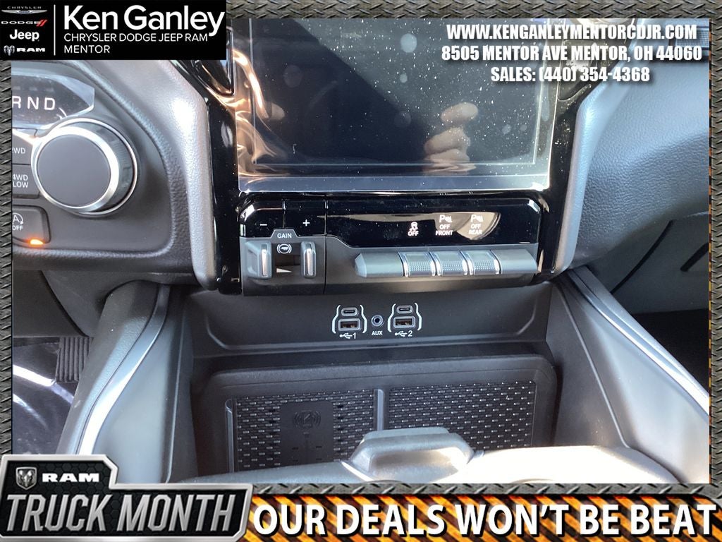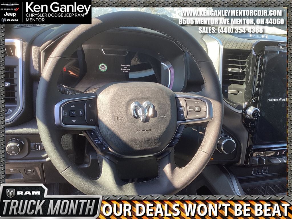 *ParkView Rear Back-Up Camera, 115V Auxiliary Power Outlet, 115V Auxiliary Rear Power Outlet, 12 Touchscreen Display, 2nd Row in Floor Storage Bins, 3 Rear Seat Head Restraints, 4 Way Front Headrests, 4-Wheel Disc Brakes, 400W Inverter, 48V Belt Starter Generator, 4G LTE Wi-Fi Hot Spot, 6 Speakers, 9 Amplified Speakers with Subwoofer, ABS brakes, Accent Color Door Handles, Accent Color Premium Power Mirrors, Accent Color Tailgate Handle, Air Conditioning, Air Conditioning ATC with Dual Zone Control, Alloy wheels, AM/FM radio, Anti-Spin Differential Rear Axle, Apple CarPlay, Apple CarPlay/Android Auto, Auto High-beam Headlights, Auto Power-Folding Mirrors, Auto-Dimming Exterior Driver Mirror, Auto-Dimming Rear-View Mirror, Big Horn Level 2 Equipment Group, Black Exterior Mirrors, Black Exterior Truck Badging, Black Headlamp Bezels, Black Interior Accents, Black Painted Exterior Mirrors Caps, Black Premium Power Mirrors, Black Tail Lamp Bezels, Body Color Fender Flares, Body Color Front Bumper, Body Color Rear Bumper with Step Pads, Brake assist, Bucket Seats, Bumpers: chrome, Center Console Parts Module, Cloth Bucket Seats, Cluster 12 TFT Color Display, Cluster 7.0 TFT Color Display, Compass, Configurable Drive Mode, Connected Travel and Traffic Services, Connectivity - US/Canada, Convex Wide-Angle Exterior Mirror Insert, Delay-off headlights, Deluxe Cloth Bucket Seats, Disassociated Touchscreen Display, Driver door bin, Dual Exhaust with Black Tips, Dual front impact airbags, Dual front side impact airbags, Electronic Stability Control, Exterior Mirrors Courtesy Lamps, Exterior Mirrors with Heating Element, Exterior Mirrors with Supplemental Signals, Front anti-roll bar, Front Bucket Seats, Front Center Armrest w/Storage, Front fog lights, Front License Plate Bracket, Front reading lights, Front Seat Back Map Pockets, Front wheel independent suspension, Full Length Floor Console, Fully automatic headlights, Global Telematics Box Module, Glove Box Lamp, Google Android Auto, GPS Antenna Input, GPS Navigation, Grille Black Surround Black Mesh, HD Radio, Heated door mirrors, Heated Front Seats, Heated Steering Wheel, Illuminated entry, Integrated Center Stack Radio, Integrated Voice Command with Bluetooth®, Leather Wrapped Steering Wheel, LED Dome Lamp with on/Off Switch, LED Footwell Lighting, Low tire pressure warning, Manual Adjust 4-Way Driver Seat, Manual Adjust 4-Way Front Passenger Seat, Manual Folding Exterior Mirrors, Manufacturer's Statement of Origin, Media Hub with 2 Charge Only USBs, MOPAR Front and Rear Rubber Floor Mats, MyFlexCare Service Plan, Night Edition, Occupant sensing airbag, Outside temperature display, Overhead airbag, Overhead console, Overhead LED Lamps, Panic alarm, Passenger door bin, Passenger vanity mirror, Power 2-Way Driver Lumbar Adjust, Power Adjust 8-Way Driver Seat, Power Adjustable Pedals, Power door mirrors, Power steering, Power windows, Premium Overhead Console, Quick Order Package 21Z Big Horn, Radio data system, Radio: Uconnect 5 Navigation with 12.0 Display, Radio: Uconnect 5 W with 8.4 Display, RAM Grille Badge - Black, RAM Grille Badge - Chrome, Rear 60/40 Folding Seat, Rear anti-roll bar, Rear Center Armrest, Rear Power Sliding Window, Rear step bumper, Rear Wheelhouse Liners, Rear Window Defroster, Remote keyless entry, Remote Tailgate Release, Security Alarm, SiriusXM Radio Service, SiriusXM with 360L, Speed control, Steering Wheel Mounted Audio Controls, Sun Visors with Illuminated Vanity Mirrors, Supplier Part Tracking (J-1), Tachometer, Telescoping steering wheel, Tilt steering wheel, Traction control, Trailer Brake Control, Trip computer, Universal Garage Door Opener, USB Host Flip, Variably intermittent wipers, Voltmeter, Wheels: 20 x 9.0 Aluminum Painted Clad. PRICING AVAILABLE TO ALL CUSTOMER!!! WE ARE ONE OF OHIO'S LEADING VOLUME DEALERSHIPS COME SEE OUR HUGE SELECTION AND U Price includes: $3500 - 2026 National Retail Bonus Cash . Exp. 04/30/2026