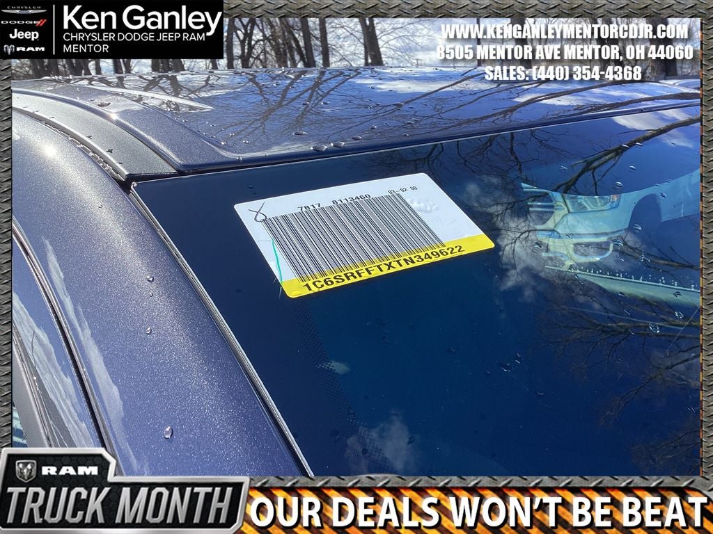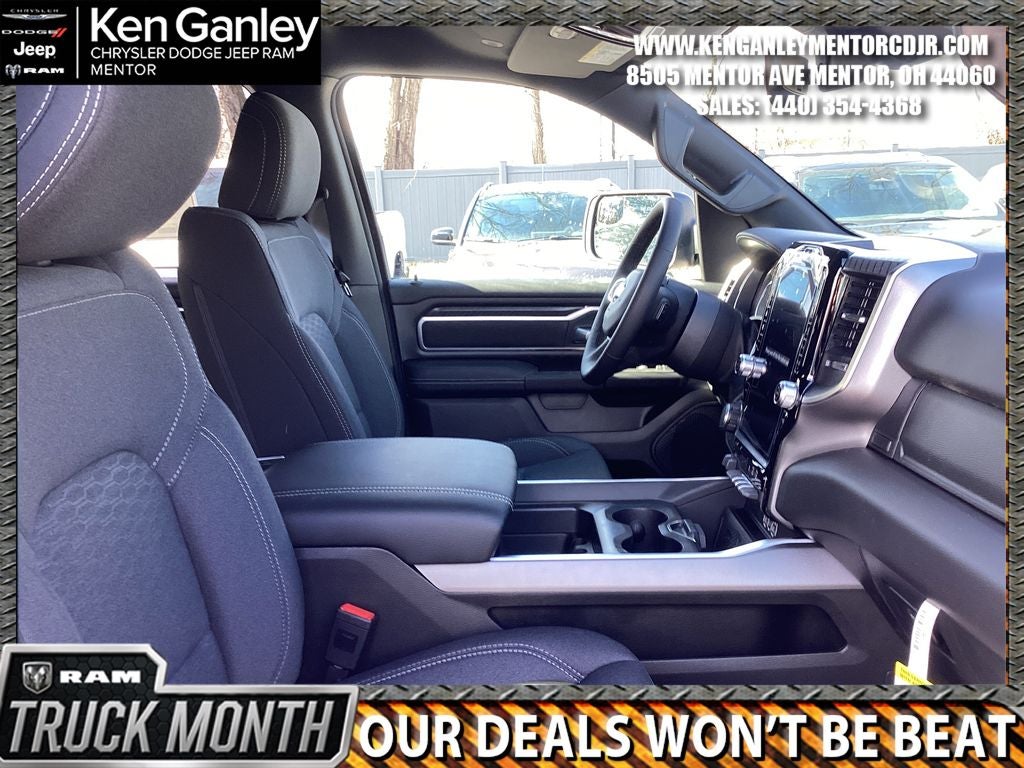 *ParkView Rear Back-Up Camera, 115V Auxiliary Power Outlet, 115V Auxiliary Rear Power Outlet, 12 Touchscreen Display, 2nd Row in Floor Storage Bins, 3 Rear Seat Head Restraints, 4 Way Front Headrests, 4-Wheel Disc Brakes, 400W Inverter, 48V Belt Starter Generator, 4G LTE Wi-Fi Hot Spot, 6 Speakers, 9 Amplified Speakers with Subwoofer, ABS brakes, Accent Color Door Handles, Accent Color Premium Power Mirrors, Accent Color Tailgate Handle, Air Conditioning, Air Conditioning ATC with Dual Zone Control, Alloy wheels, AM/FM radio, Anti-Spin Differential Rear Axle, Apple CarPlay, Apple CarPlay/Android Auto, Auto High-beam Headlights, Auto Power-Folding Mirrors, Auto-Dimming Exterior Driver Mirror, Auto-Dimming Rear-View Mirror, Big Horn Level 2 Equipment Group, Black Exterior Mirrors, Black Exterior Truck Badging, Black Headlamp Bezels, Black Interior Accents, Black Painted Exterior Mirrors Caps, Black Premium Power Mirrors, Black Tail Lamp Bezels, Body Color Fender Flares, Body Color Front Bumper, Body Color Rear Bumper with Step Pads, Brake assist, Bucket Seats, Bumpers: chrome, Center Console Parts Module, Cloth Bucket Seats, Cluster 12 TFT Color Display, Cluster 7.0 TFT Color Display, Compass, Configurable Drive Mode, Connected Travel and Traffic Services, Connectivity - US/Canada, Convex Wide-Angle Exterior Mirror Insert, Delay-off headlights, Deluxe Cloth Bucket Seats, Disassociated Touchscreen Display, Driver door bin, Dual Exhaust with Black Tips, Dual front impact airbags, Dual front side impact airbags, Electronic Stability Control, Exterior Mirrors Courtesy Lamps, Exterior Mirrors with Heating Element, Exterior Mirrors with Supplemental Signals, Front anti-roll bar, Front Bucket Seats, Front Center Armrest w/Storage, Front fog lights, Front License Plate Bracket, Front reading lights, Front Seat Back Map Pockets, Front wheel independent suspension, Full Length Floor Console, Fully automatic headlights, Global Telematics Box Module, Glove Box Lamp, Google Android Auto, GPS Antenna Input, GPS Navigation, Grille Black Surround Black Mesh, HD Radio, Heated door mirrors, Heated Front Seats, Heated Steering Wheel, Illuminated entry, Integrated Center Stack Radio, Integrated Voice Command with Bluetooth®, Leather Wrapped Steering Wheel, LED Dome Lamp with on/Off Switch, LED Footwell Lighting, Low tire pressure warning, Manual Adjust 4-Way Driver Seat, Manual Adjust 4-Way Front Passenger Seat, Manual Folding Exterior Mirrors, Manufacturer's Statement of Origin, Media Hub with 2 Charge Only USBs, MOPAR Front and Rear Rubber Floor Mats, MyFlexCare Service Plan, Night Edition, Occupant sensing airbag, Outside temperature display, Overhead airbag, Overhead console, Overhead LED Lamps, Panic alarm, Passenger door bin, Passenger vanity mirror, Power 2-Way Driver Lumbar Adjust, Power Adjust 8-Way Driver Seat, Power Adjustable Pedals, Power door mirrors, Power steering, Power windows, Premium Overhead Console, Quick Order Package 27Z Big Horn, Radio data system, Radio: Uconnect 5 Navigation with 12.0 Display, Radio: Uconnect 5 W with 8.4 Display, RAM Grille Badge - Black, RAM Grille Badge - Chrome, Rear 60/40 Folding Seat, Rear anti-roll bar, Rear Center Armrest, Rear Power Sliding Window, Rear step bumper, Rear Window Defroster, Remote keyless entry, Remote Tailgate Release, Security Alarm, SiriusXM Radio Service, SiriusXM with 360L, Speed control, Steering Wheel Mounted Audio Controls, Sun Visors with Illuminated Vanity Mirrors, Supplier Part Tracking (J-1), Tachometer, Telescoping steering wheel, Tilt steering wheel, Traction control, Trailer Brake Control, Trip computer, Universal Garage Door Opener, USB Host Flip, Variably intermittent wipers, Voltmeter, Wheels: 20 x 9.0 Aluminum Painted Clad. PRICING AVAILABLE TO ALL CUSTOMER!!! WE ARE ONE OF OHIO'S LEADING VOLUME DEALERSHIPS COME SEE OUR HUGE SELECTION AND UNMATCHED SAVINGS ONLY AT Price includes: $3500 - 2026 National Retail Bonus Cash . Exp. 04/30/2026