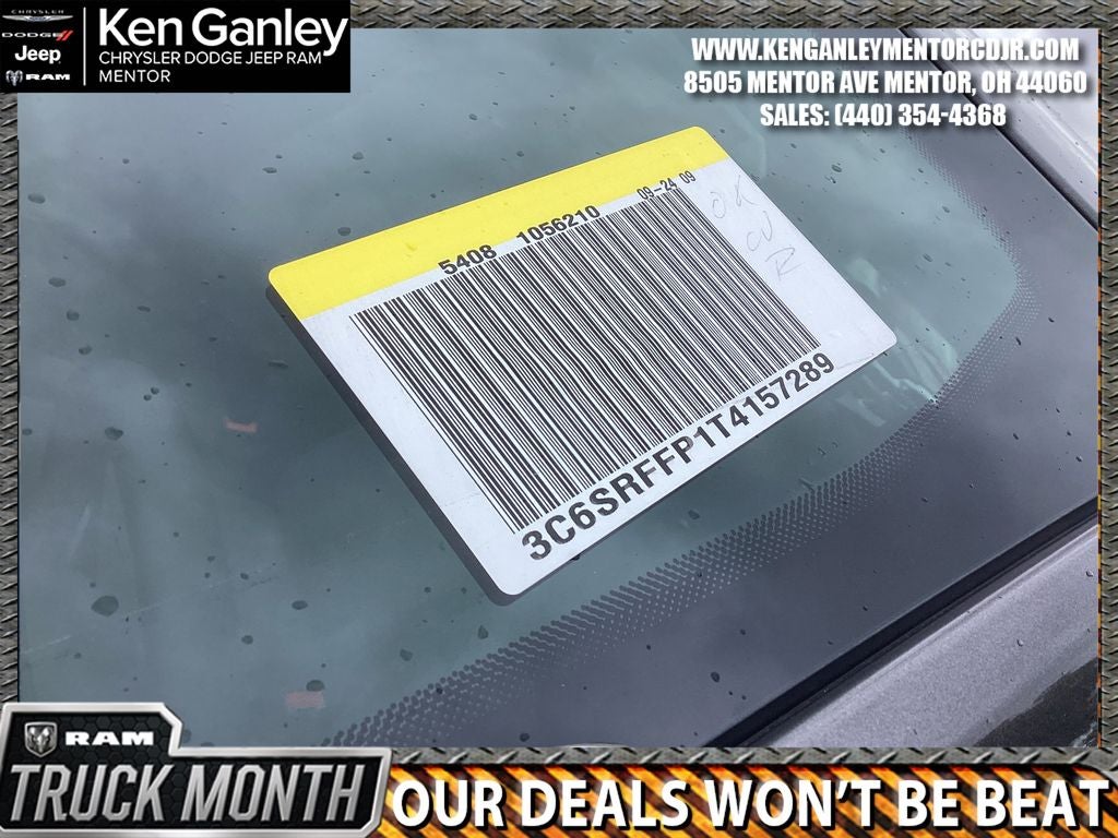 *ParkView Rear Back-Up Camera, 115V Auxiliary Power Outlet, 2nd Row in Floor Storage Bins, 3 Rear Seat Head Restraints, 4 Way Front Headrests, 4-Wheel Disc Brakes, 400W Inverter, 48V Belt Starter Generator, 4G LTE Wi-Fi Hot Spot, 6 Speakers, ABS brakes, Air Conditioning, Alloy wheels, AM/FM radio, Apple CarPlay, Apple CarPlay/Android Auto, Auto High-beam Headlights, Auto Power-Folding Mirrors, Auto-Dimming Exterior Driver Mirror, Auto-Dimming Rear-View Mirror, Big Horn Level 1 Equipment Group, Black Exterior Mirrors, Black Premium Power Mirrors, Body Color Fender Flares, Brake assist, Bucket Seats, Bumpers: chrome, Center Console Parts Module, Cloth Bucket Seats, Compass, Connectivity - US/Canada, Convex Wide-Angle Exterior Mirror Insert, Delay-off headlights, Deluxe Cloth Bucket Seats, Driver door bin, Dual front impact airbags, Dual front side impact airbags, Electronic Stability Control, Exterior Mirrors Courtesy Lamps, Exterior Mirrors with Heating Element, Exterior Mirrors with Supplemental Signals, Front anti-roll bar, Front Bucket Seats, Front Center Armrest w/Storage, Front fog lights, Front License Plate Bracket, Front reading lights, Front Seat Back Map Pockets, Front wheel independent suspension, Full Length Floor Console, Fully automatic headlights, Global Telematics Box Module, Glove Box Lamp, Google Android Auto, GPS Antenna Input, Heated door mirrors, Heated Front Seats, Heated Steering Wheel, Illuminated entry, Integrated Center Stack Radio, Integrated Voice Command with Bluetooth®, Leather Wrapped Steering Wheel, Low tire pressure warning, Manual Adjust 4-Way Driver Seat, Manual Adjust 4-Way Front Passenger Seat, Manual Folding Exterior Mirrors, Manufacturer's Statement of Origin, MOPAR Front and Rear Rubber Floor Mats, MyFlexCare Service Plan, Occupant sensing airbag, Outside temperature display, Overhead airbag, Overhead console, Panic alarm, Passenger door bin, Passenger vanity mirror, Power 2-Way Driver Lumbar Adjust, Power Adjust 8-Way Driver Seat, Power Adjustable Pedals, Power door mirrors, Power steering, Power windows, Quick Order Package 21Z Big Horn, Radio data system, Radio: Uconnect 5 W with 8.4 Display, RAM Grille Badge - Chrome, Rear 60/40 Folding Seat, Rear anti-roll bar, Rear Center Armrest, Rear Dome with on/Off Switch Lamp, Rear Power Sliding Window, Rear step bumper, Rear Wheelhouse Liners, Rear Window Defroster, Remote keyless entry, SiriusXM Radio Service, SiriusXM Satellite Radio, Speed control, Steering Wheel Mounted Audio Controls, Sun Visors with Illuminated Vanity Mirrors, Supplier Part Tracking (J-1), Tachometer, Telescoping steering wheel, Tilt steering wheel, Traction control, Trailer Brake Control, Trip computer, Universal Garage Door Opener, USB Host Flip, Variably intermittent wipers, Voltmeter, Wheels: 18 x 8 Cast-Aluminum Painted. PRICING AVAILABLE TO ALL CUSTOMER!!! WE ARE ONE OF OHIO'S LEADING VOLUME DEALERSHIPS COME SEE OUR HUGE SELECTION AND UNMATCHED SAVINGS ONLY AT GANLEY VILLAGE CHRYSLER DODGE JEEP RAM FIAT OF PAINESVILLE, OH 44077.