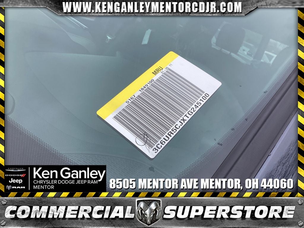*ParkView Rear Back-Up Camera, 115-Volt Auxiliary Front Power Outlet, 12 Touchscreen Display, 2 Way Rear Headrest Seat, 4 Way Front Headrests, 4-Wheel Disc Brakes, 40/20/40 Split Bench Seat, 400W Inverter, 4G LTE Wi-Fi Hot Spot, 6 Speakers, ABS brakes, Air Conditioning, Air Conditioning ATC with Dual Zone Control, Alexa Built-in, AM/FM radio: SiriusXM, Anti-Spin Differential Rear Axle, Apple CarPlay, Apple CarPlay/Android Auto, Auto Power-Folding Mirrors, Auto-Dimming Rear-View Mirror, Bed Convenience Group, Black Exterior Mirrors, Black Wheel Center Hub, Body Color Grille-Surround, Brake assist, Carpet Floor Covering, Clearance Lamps, Cloth 40/20/40 Bench Seat, Compass, Connected Travel and Traffic Services, Connectivity - US/Canada, Dash Pass Thru Wire Circuits, Delay-off headlights, Disassociated Touchscreen Display, Driver door bin, Dual Alternators Rated At 400 Amps, Dual front impact airbags, Dual front side impact airbags, Electronic Stability Control, Emergency Vehicle Alert System (EVAS), Exterior 115V AC Outlet, Exterior Mirrors Courtesy Lamps, Exterior Mirrors with Heating Element, Exterior Mirrors with Supplemental Signals, For Details, Visit DriveUconnect.com, For More Info, Call 800-643-2112, Forward and Reverse Utility Lights, Front and Rear Floor Mats, Front anti-roll bar, Front Armrest with Cupholders, Front Center Armrest w/Storage, Front fog lights, Front License Plate Bracket, Front reading lights, Fully automatic headlights, Global Telematics Box Module, Google Android Auto, GPS Antenna Input, GPS Navigation, HD Radio, Illuminated entry, Instrument Panel Mounted Auxiliary Switches, Integrated Voice Command with Bluetooth®, LED Bed Lighting, Low tire pressure warning, Manual Adjust 4-Way Driver Seat, Manual Adjust 4-Way Front Passenger Seat, Manual Folding Exterior Mirrors, Manual Telescoping Mirrors, Manufacturer's Statement of Origin, Mirror Running Lights, Mopar Black Tubular Side Steps, MOPAR Front and Rear Rubber Floor Mats, MOPAR Spray in Bedliner, MyFlexCare Service Plan, Occupant sensing airbag, Off-Road Info Pages, Outside temperature display, Overhead airbag, Overhead console, Painted Front Bumper, Painted Rear Bumper, Panic alarm, ParkSense Front/Rear Park Assist System, Passenger door bin, Passenger vanity mirror, Power Adjust Mirrors, Power Heated Folding Telescopic Mirrors, Power steering, Power Telescoping Mirrors, Power windows, Power-Adjustable Convex Aux Mirrors, Quick Order Package 2UC Black Express, Radio data system, Radio: Uconnect 5 Navigation with 12.0 Display, Radio: Uconnect 5 with 8.4 Display, Rear anti-roll bar, Rear Folding Seat, Rear Power Sliding Window, Rear step bumper, Rear Wheelhouse Liners, Rear window defroster, Remote keyless entry, Remote USB Port - Charge Only, Selectable Tire Fill Alert, SiriusXM Radio Service, SiriusXM with 360L, Speed control, Sport Performance Hood, Storage Tray, Tachometer, Tilt steering wheel, Tinted Acoustic Windshield Glass, Traction control, Tradesman Level 1 Equipment Group, Trailer Tow Pages, Variably intermittent wipers, Voltmeter, Wheels: 17 x 7.5 Black Steel Styled, Wheels: 20 x 8.0 Black Painted Aluminum. PRICING AVAILABLE TO ALL CUSTOMER!!! WE ARE ONE OF OHIO'S LEADING VOLUME DEALERSHIPS COME SEE OUR HUGE SELECTION AND UNMATCHED SAVINGS ONLY AT GANLEY VILLAGE CHRYSLER DODGE JEEP RAM FIAT OF PAINESVILLE, OH 44077.