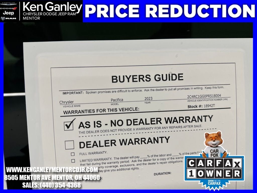 - Vehicle Name: Chrysler Pacifica